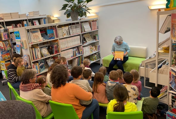 Schweizer Vorlesetag im Mai, mit Unterstützung der Spieleanimatorin Barbara Ryffel: